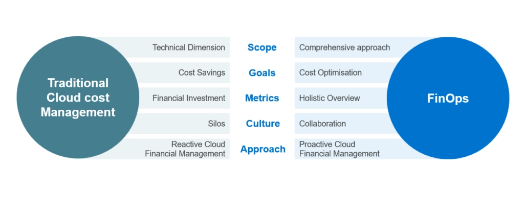 Traditional Cloud cost management differs in many ways from the FinOps approach: