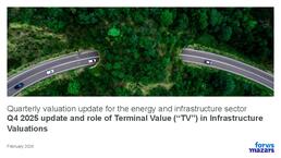 Explore the latest valuation trends in the energy & infrastructure sector, with a spotlight on the role of terminal value. Our Q4 2025 update provides a snapshot of some of the main publicly available valuation trends across the energy & infrastructure sector, covering both debt and equity metrics.